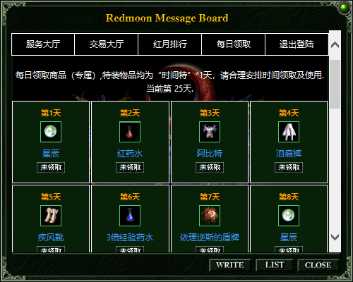 点卷/红月币游戏中通过打怪获得"福袋"至公告栏兑换.